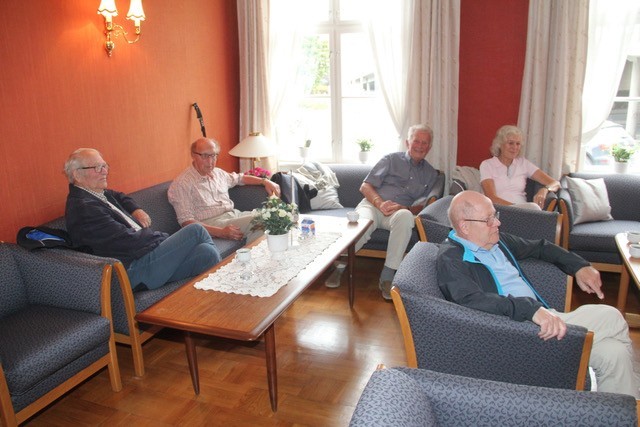 Vakkert sommervær. Bare 11 medlemmer møtte opp i lille peisestue. Men det ble rikelig med diskusjoner!