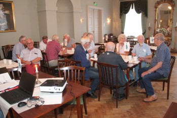 Vakkert sommervær. Bare 11 medlemmer møtte opp i lille peisestue. Men det ble rikelig med diskusjoner!