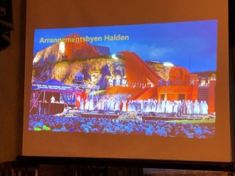 Liv Lindskog avsluttet sitt foredrag med en bildeserie fra arrangementer i Halden i sommer. Presidenten takket for et glimrende foredrag ved å overrekke en tradisjonell gavepose med innhold, til applaus fra medlemmene.