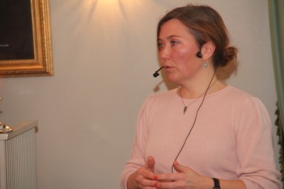 President Christian ønsket velkommen til 28 medlemmer og – ikke minst – til kveldens foredragsholder: Frederikke Stensrød, som holdt et flott foredrag om gründervirksomheten i Østfold.