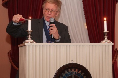 Fungerende president Gunnar Skjerve ønsket velkommen i ballsalen til 22 medlemmer og 1 gjest, samt til en håndfull med medlemmer fra Fredriksten. Dessuten hjertelig velkommen til kveldens 2 foredragsholdere fra politiet: Stasjonssjef Roger Johannesen og politikontakt Åse Sivertsen. Presidenten tente 2 lys: ett for Fred og Frihet, ett for Vennskap.