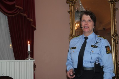 Presidenten presenterte kveldens 2 foredragsholdere: Politistasjonssjef Roger Johannesen. Han er fra Fredrikstad og heier på Leeds United. Han er øverste leder for politiet i Halden og Aremark.