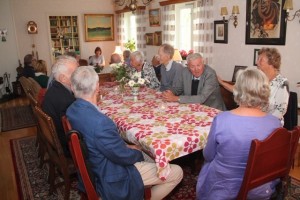 Vakkert sommervær. Bare 11 medlemmer møtte opp i lille peisestue. Men det ble rikelig med diskusjoner!