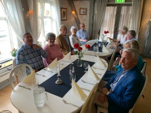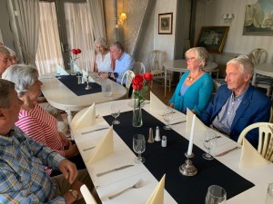 Vakkert sommervær. Bare 11 medlemmer møtte opp i lille peisestue. Men det ble rikelig med diskusjoner!