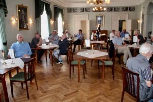 Vakkert sommervær. Bare 11 medlemmer møtte opp i lille peisestue. Men det ble rikelig med diskusjoner!
