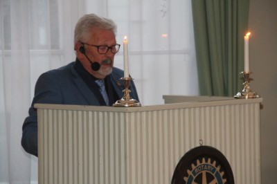 Presidenten ønsket sine Rotary-venner velkommen til Rotary-årets siste møte med foredrag, som var om utvikling av jernbanens sikkerhetsprinsipper.