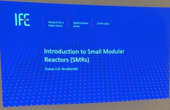 Norlander presenterte seg og sin arbeidsplass IFE kort. Foredraget handlet om utviklingen og muligheten som ligger i små kjernereaktorer, så små at de kan fraktes på en trailer. En utfordring med dagens kjernekraftverk er at alle er unike og ulike. De nye, små reaktorene vil være forholdsvis like. De vil ikke bare være stasjonære som dagens reaktorer, men mobile. Det åpner blant annet for muligheten til å raskt sette opp en slik reaktor når strømforsyning er ødelagt for eksempel ved en naturkatastrofe.
