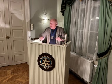 Presidenten ønsket sine Rotary-venner velkommen til Rotary-årets siste møte med foredrag, som var om utvikling av jernbanens sikkerhetsprinsipper.