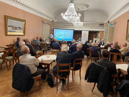 Presidenten ønsket sine Rotary-venner velkommen til Rotary-årets siste møte med foredrag, som var om utvikling av jernbanens sikkerhetsprinsipper.
