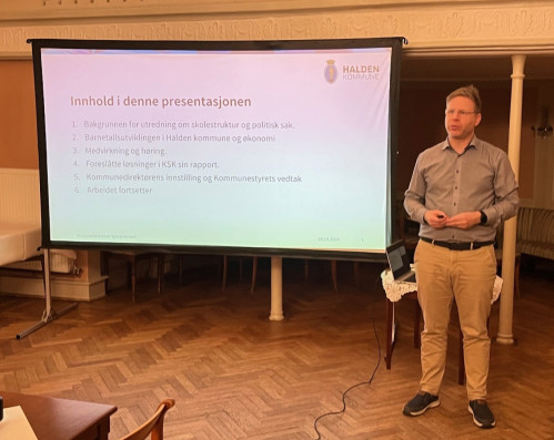 Kveldens foredragsholder var Kent-Arne Andreassen, direktør for undervisning og oppvekst i Halden Kommune. Denne avdelingen er en stor bedrift i kommunen og teller rund 700 ansatte omfattende bl. annet skole, barnehaver, PPT, skolefritidsordning mm.
