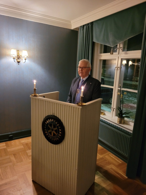 Presidenten ønsket velkommen til 25 medlemmer, idet han tente 2 lys: ett for fred og ett for vennskap.