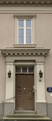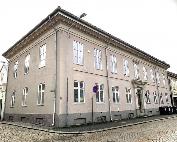 Bygningen er beskrevet som «… et stort borgerhus over to etasjer med glatte pussfasader med nøktern ornamentbruk. Inngangspartiet danner et dekorativt og kompositorisk tyngdepunkt på denne godt komponerte empirefasaden». Trolig er bygningen tegnet av Christian Heinrich Grosch, en av byens kjente empirearkitekter.