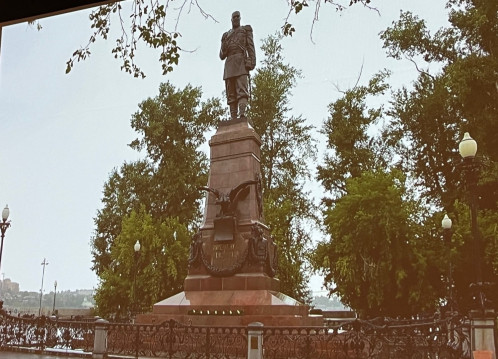 flere steder var det statuer fra tsartiden som hadde vært tatt vare på gjennom kommunist tiden og nå var gjenreist på sine sokler. Vi fikk se bilder av en vakker jernbanestasjon i Novosibirsk og fra togstopp ved Bajkal sjøen.