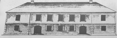 Etter forslag fra Gedde fikk Balthazar Nicolai Garben, også arkitekt ingeniøroffiser, overoppsynet med byggingen. Geddes tegninger omfattet de 5 vindusaksene på langsiden av bygget. Allerede i 1837 utarbeidet Garben et forslag til utvidelse med tilbygg på begge sider, som ble gjennomført i 1842. Med disse utvidelsene fikk bygningen sin nåværende utforming med fasader som gir et helhetlig preg og tegnet i tidens empirestil.